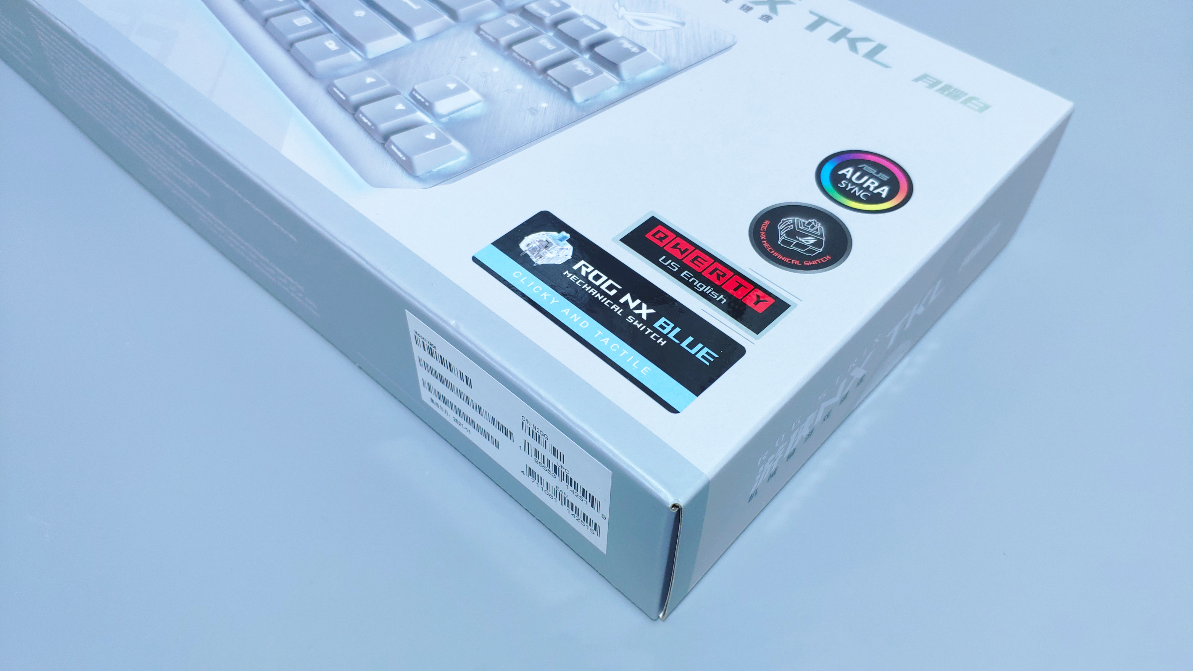 先行简单地开个箱,外包装使用了与内里机械键盘同视觉效果的设计,如果没记错的话,ROG游侠NX TKL是其机械键盘序列的第一款白色系配色产品,官方给到的名称是月耀白,从标识还可以获取到支持Arua Sync神光同步,对于拥有ROG全家桶的用户就显得格外友好了。