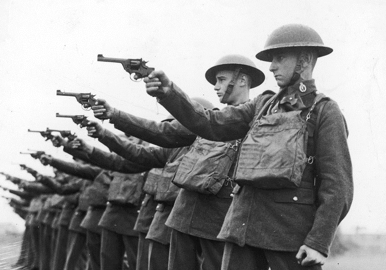 而英国人那会儿对左轮手枪是情有独钟,一战二战,甚至很长时间英国军队都用左轮手枪。堑壕战里,手枪的确是好用,左轮也不例外。但是左轮这东西吧,毕竟就六发子弹,六发打光了之后,装弹是真的难受。1986年迈阿密,8名FBI围攻两个歹徒,结果二死五伤,好几个的伤亡都是拜左轮所赐。这会儿,左轮手枪的这个问题,所有人都清楚,但是也无可奈何。