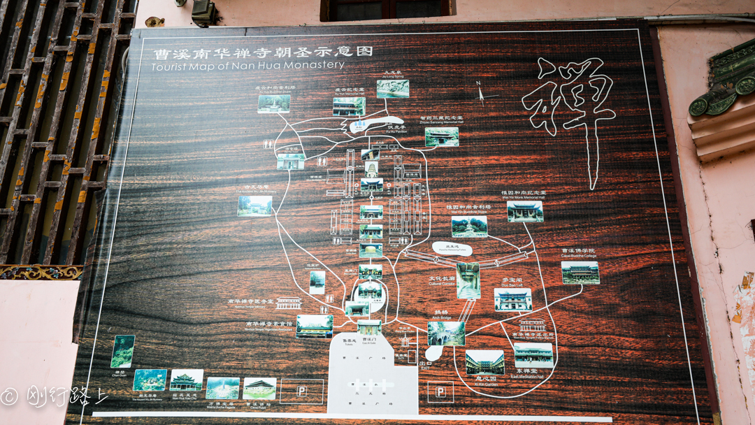 大殿后面是藏经阁和灵照塔,其后就是祖殿,六祖慧能的真身放置于内。走出殿门,过了伏虎亭和飞锡桥,上台阶,走进写着“天下宝林”石门,便是卓锡泉,可在这里洗洗手,喝喝泉水。