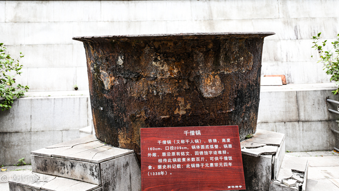 另外,在钟楼内保存着一顶万斤重的大铜钟,高2.75米,直径1.8米,铜钟上字纹清晰,声音洪亮。大雄宝殿,殿内有三尊高达八米多的大佛。两旁列有五百罗汉木雕,形态各异,栩栩如生。