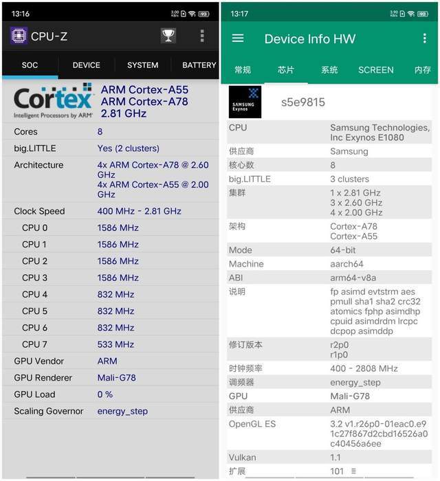 vivo X70 Pro搭载了一颗与三星合作共同研发的三星Exynos 1080处理器,采用了5nm EUV FinFET工艺制造,拥有一个A78超大核+三个A78大核+四个A55小核共八个核心组成,其中,超大核的最高主频能带到2.81GHz的高性能表现。而显卡方面,更是首发使用了Mail-G78架构核心,并带来了高达10核心的显示输出,完美轻松应对各类型图形处理。同时,该出来器还整合了5G双模基带,能为你带来最高5.1Gbps的下载速度。