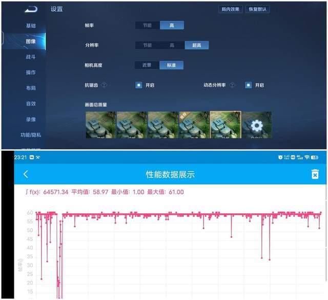 在《王者荣耀》全高开(高帧率、高分辨率、高画质)的情况下,vivo X70 Pro在120hzHz屏幕刷新率屏幕的加持下,带来了十分超高清细腻的游戏的画质显示和如同行云流水的操控体验。并且通过实时帧率监控软件可以发现,王者游戏的对战完全拉满60FPS运行,轻松祝你排位上分。