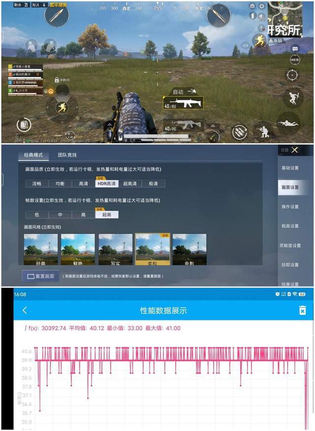 在另一款火热的《和平精英》手游上,vivo X70 Pro依旧带来了丝滑操控的体验,而且在结合《游戏空间》的4D游戏震感和鹰眼显示增强两大游戏辅助,更让你提前感受到你周边的敌人,让你能够抢尽制胜先机。而且通过实时帧率监控软件分析,由于vivo X70 Pro没有激活更好帧率模式,但整体帧率表现依旧十分平稳,畅玩上分依旧没有任何问题。