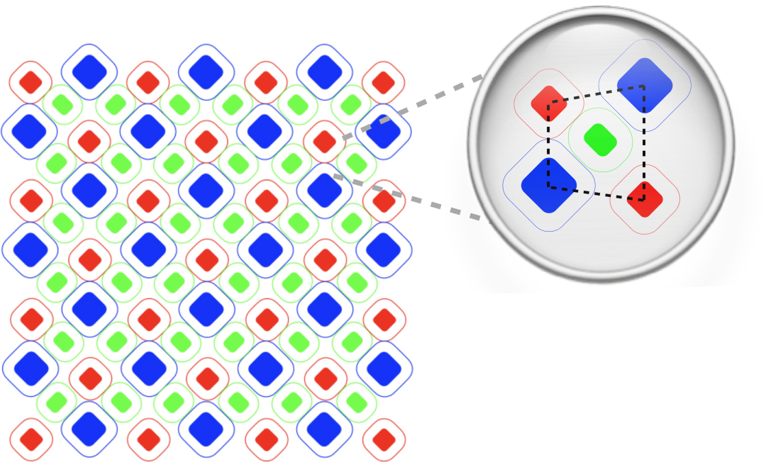 鼎型像素排列有什么特征呢?显微镜视野下的鼎型像素排列,是一个个由等腰梯形构成的子像素组合,而这种等腰梯形与我国青铜时代的礼器 —— 鼎的侧视图相似。鼎型像素排列因此而得名。