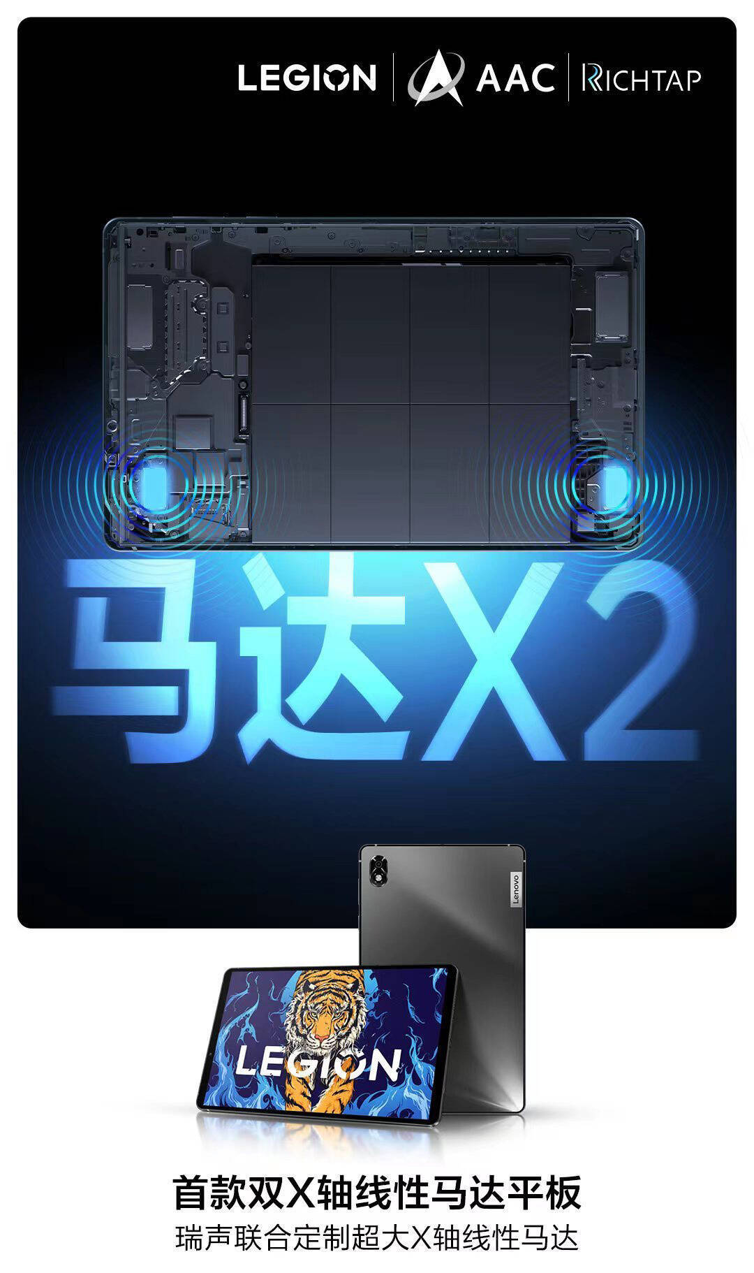 联想表示,拯救者 Y700 是首款拯救者与瑞声联合定制超大 X 轴线性马达游戏平板,支持双域立体振感,定制 300 + 振动效果。