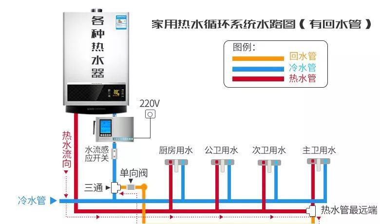即开即热循环系统通过热水循环泵,不断把管子里的冷水送回热水器加热,在水管里储满热水,一开龙头就是热水,不必像直供水那样需放出水管中的冷水才有热水,用起来“爽”,虽然方便,但相比热水器直供热水,造价要昂贵得多: