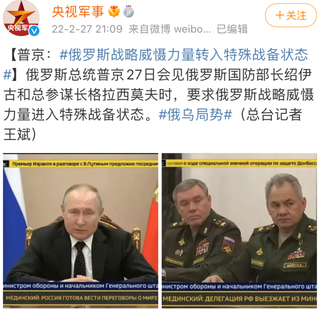 △2月27日,普京下令俄罗斯战略威慑力量进入特殊战备状态
