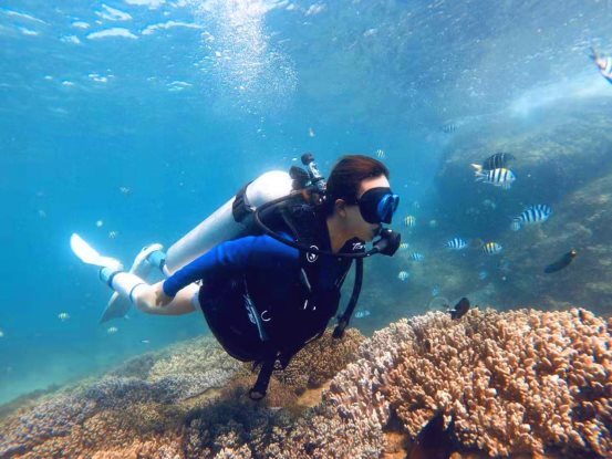 珊瑚礁潜水有点像我春节玩的高级进阶潜水,都属于水肺潜水,都是专业教练一对一陪潜,都要先学习再下海。但是,珊瑚礁潜水的潜水深度是3-8m(高级进阶潜水3-10m),少了体验潜水推进器等项目,最关键的区别是不在同一个潜点,水下风景不一样。
