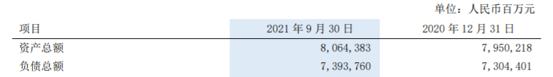 财报显示,浦发银行资产规模有所增加。截止2021年9月末,该行资产总额为80643.83亿元,较年初增加1.44%,负债总额为73937.6亿元,较年初增加1.22%。