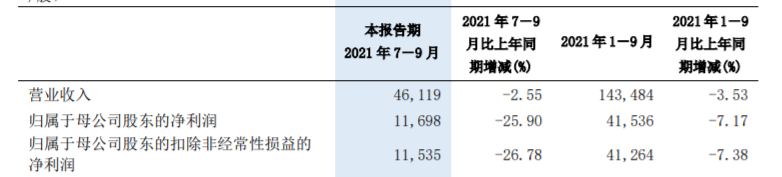 在浦发银行资产规模增加的同时,该行营业收入、净利润却双双下滑。2021年三季度报显示,浦发银行实现营业收入1434.84亿元,较上年同期下滑3.53%;实现净利润412.64亿元,较上年同期下滑7.38%;归母净利润为415.36亿元,较上年同期下降7.17%。