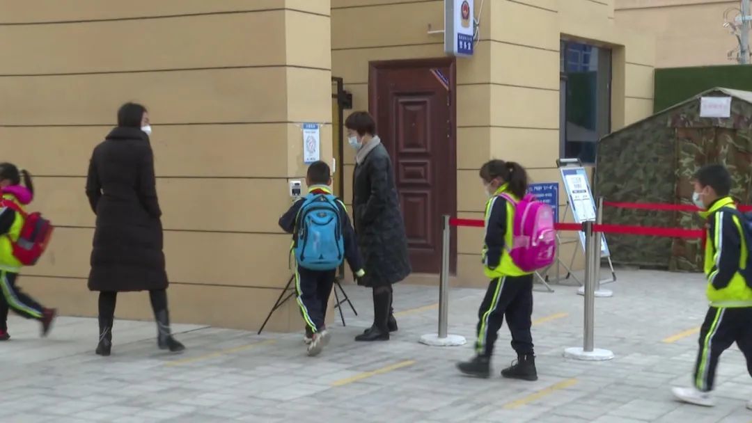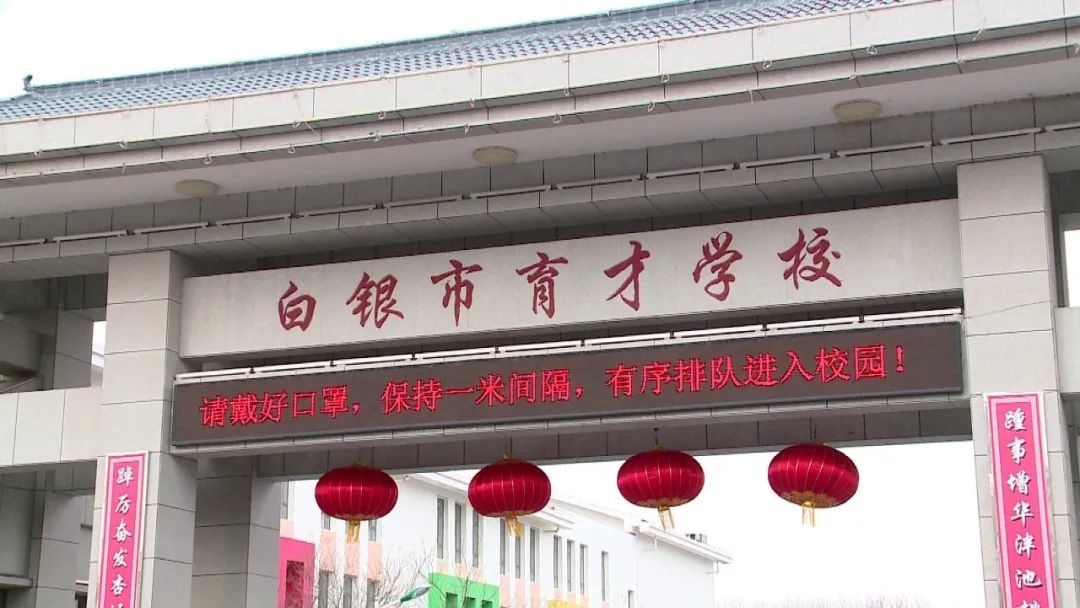 早晨8点半,在学校安保人员和值周老师的引导下,白银市育才学校的同学们佩戴口罩有序排队进入学校。