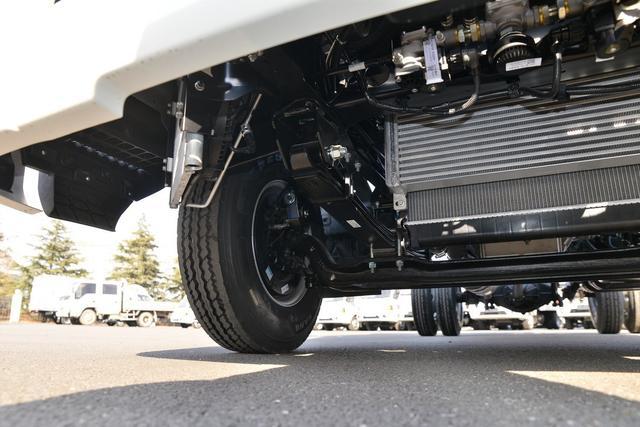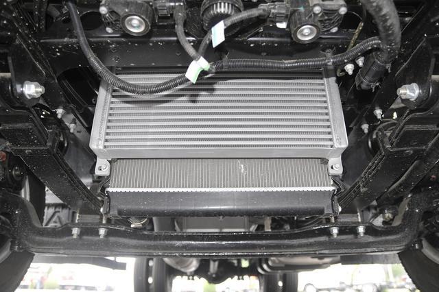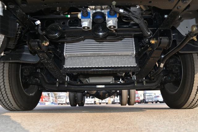 这款车采用的是采用2T前桥+4T后桥的搭配,悬架则是采用前5后5+6的形式,在搭配上规格为7.50R16 8PR的轮胎,整个的底盘承载能力完全是能够得到保障。而上装部分的货箱尺寸为4120mm×2300mm×2200mm。如果按照合规最高货箱宽度不超2100mm来算,这款车的货箱比合规车辆的货箱容积会多出2m左右的容积。