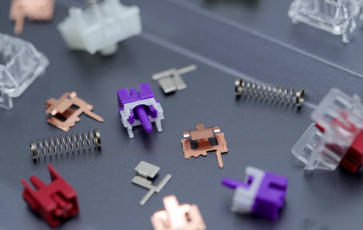 从外观上看,造型和相关尺寸与普通机械轴无异,甚至在生产流程上都高度一致,但内部结构不同。众所周知,普通机械轴中不论量产or客制化轴,都是传统接触式轴体,必须依靠触点实现导通。而LICHICX的静电机械轴是无触点结构,它通过电容值变化来实现导通判定,二者在导通原理上有本质上的差别。