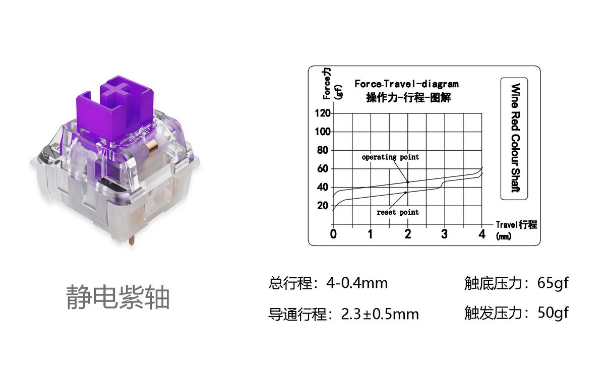 日前,力驰创新(LICHICX)发布两款静电机械轴,分别是静电红轴、静电紫轴,一款线性轴和一款有声段落轴。从参数和克重曲线可以看到,这两种轴的手感和传统的红轴、青轴相似。