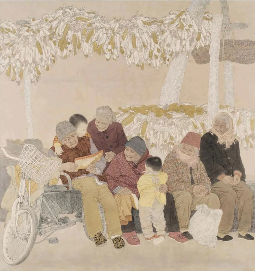 郭建明《温暖的日子》中国画 200x200cm 河南