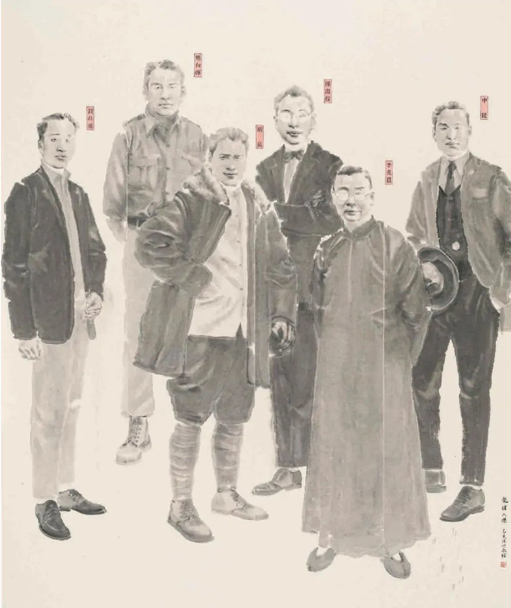 陈明《龙潭六杰》中国画 219x182cm 江苏