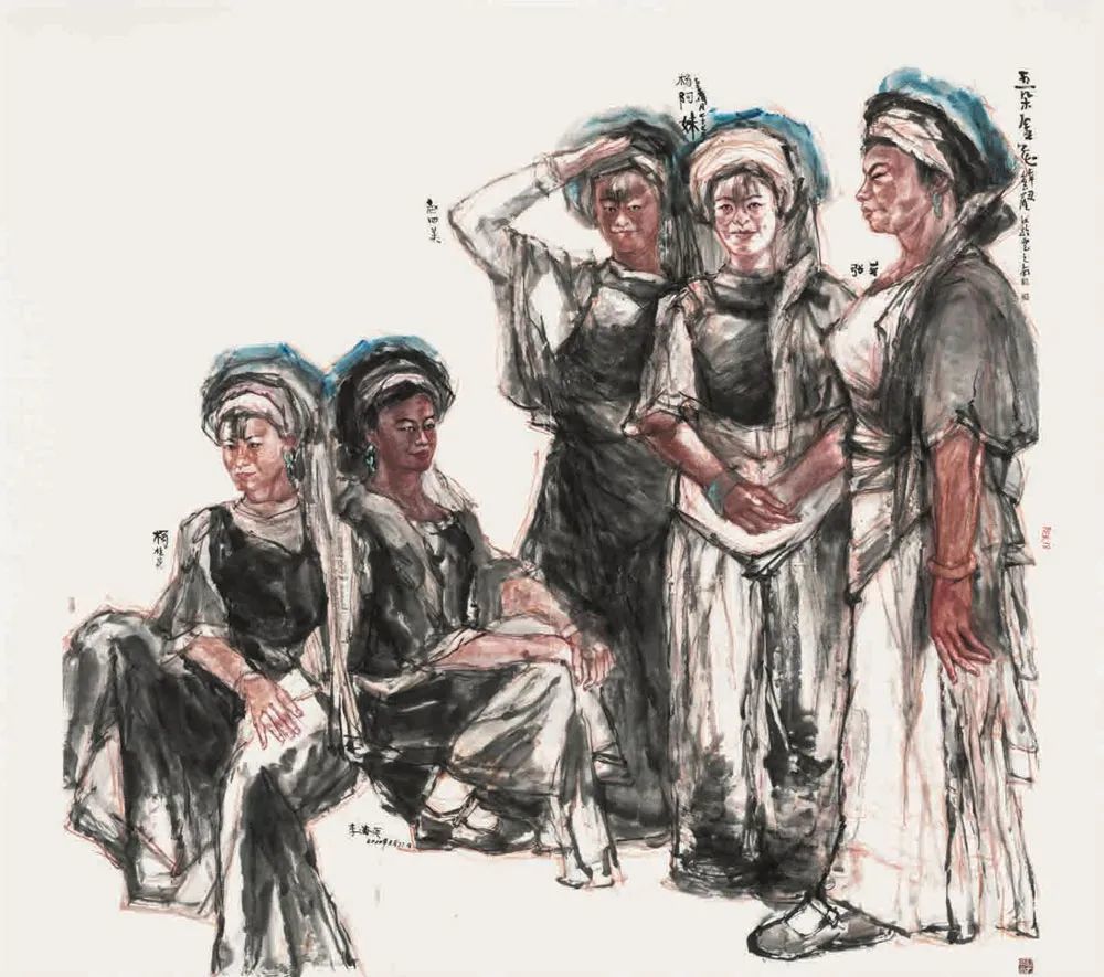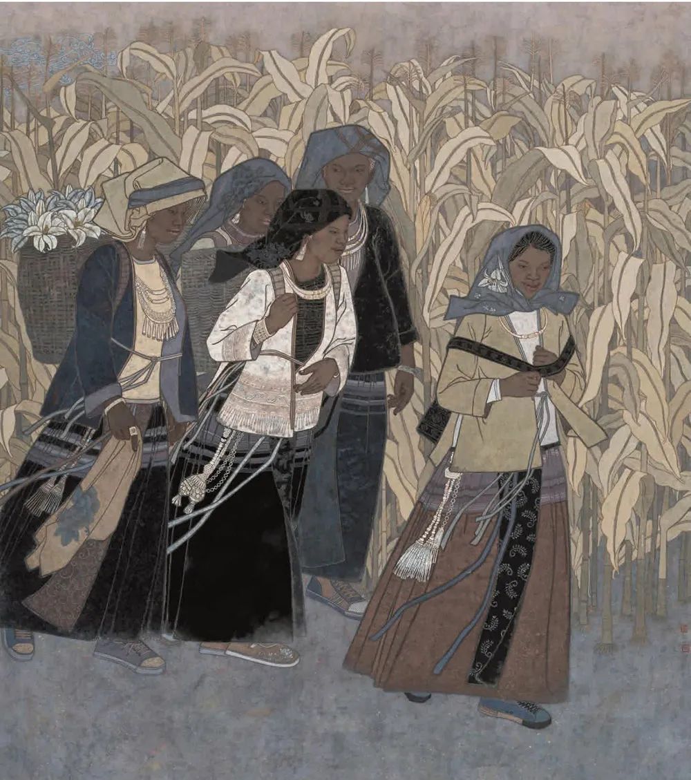 罗江《五朵金花》中国画 180x195cm 云南