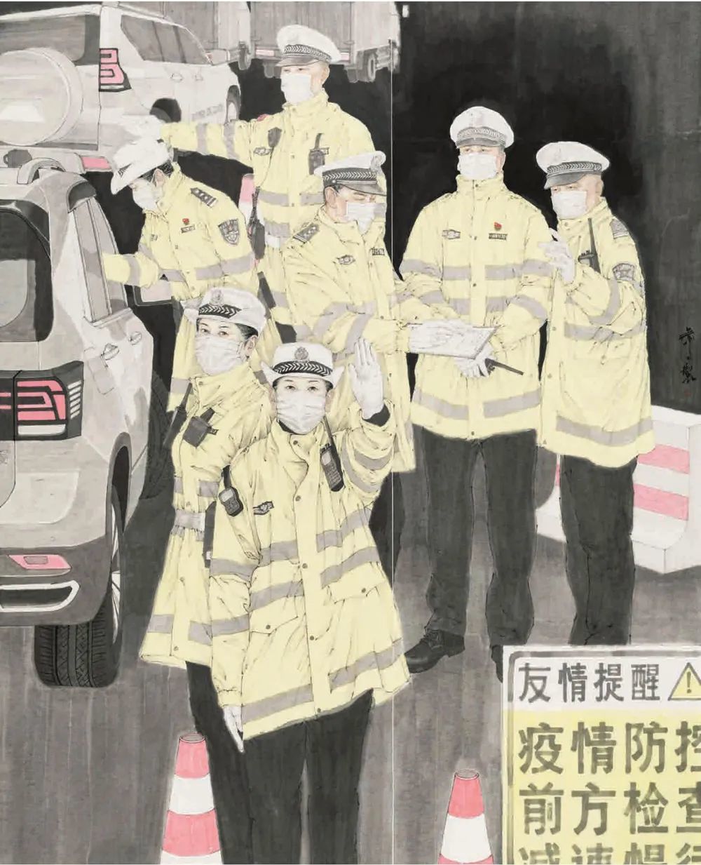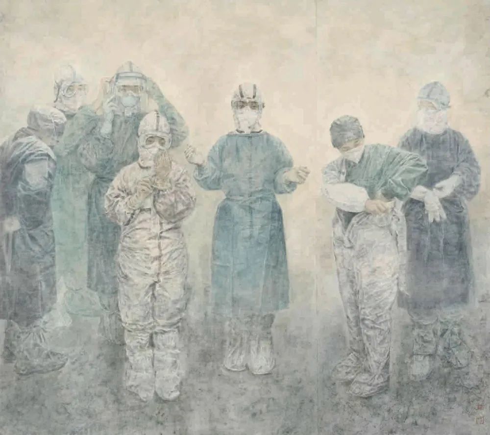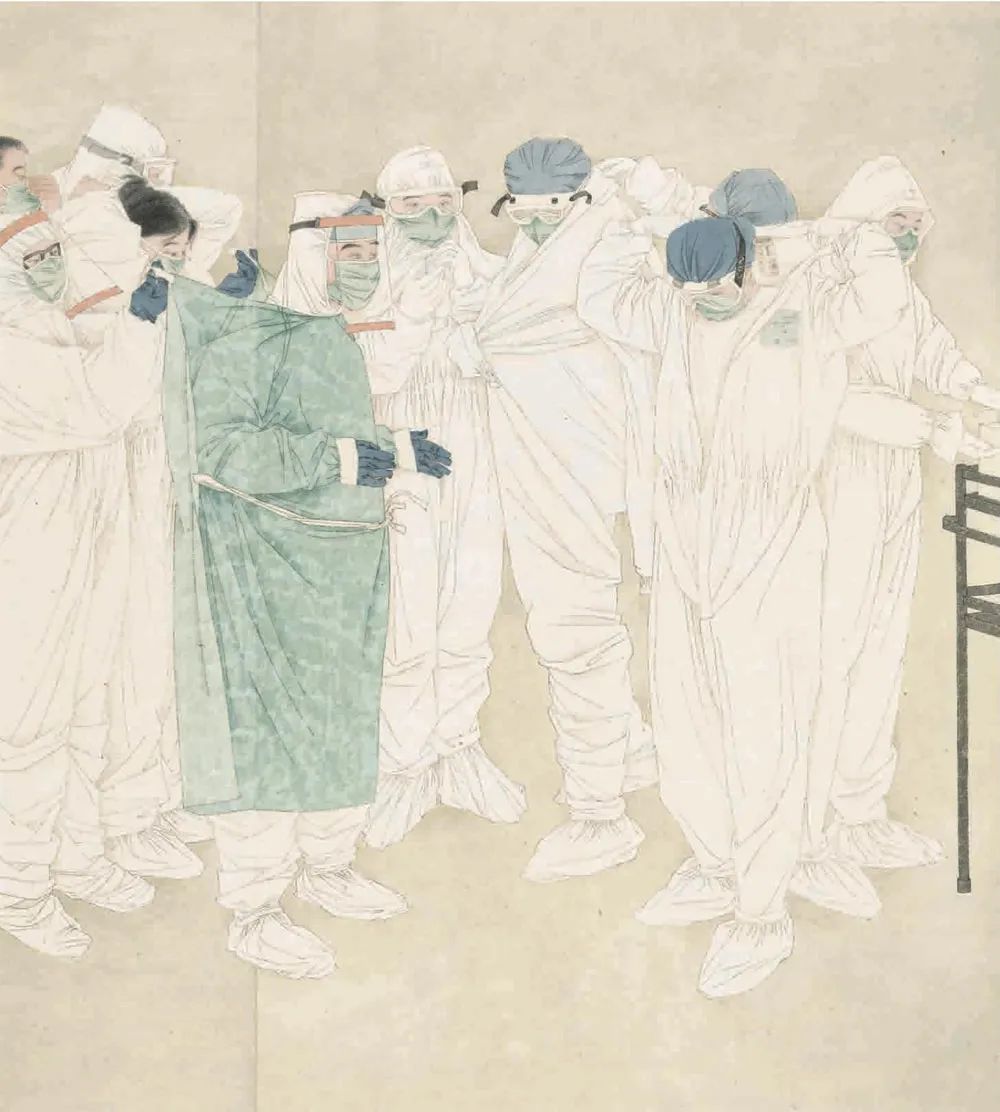杨静《致敬援鄂勇士之二》中国画 180x160cm 江苏