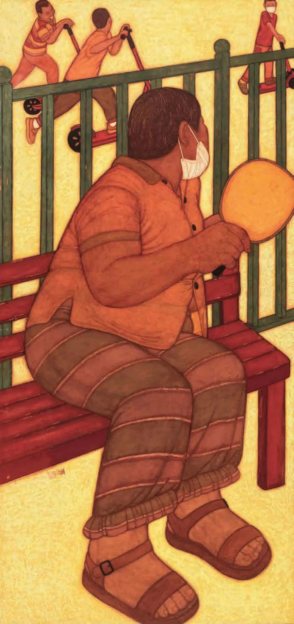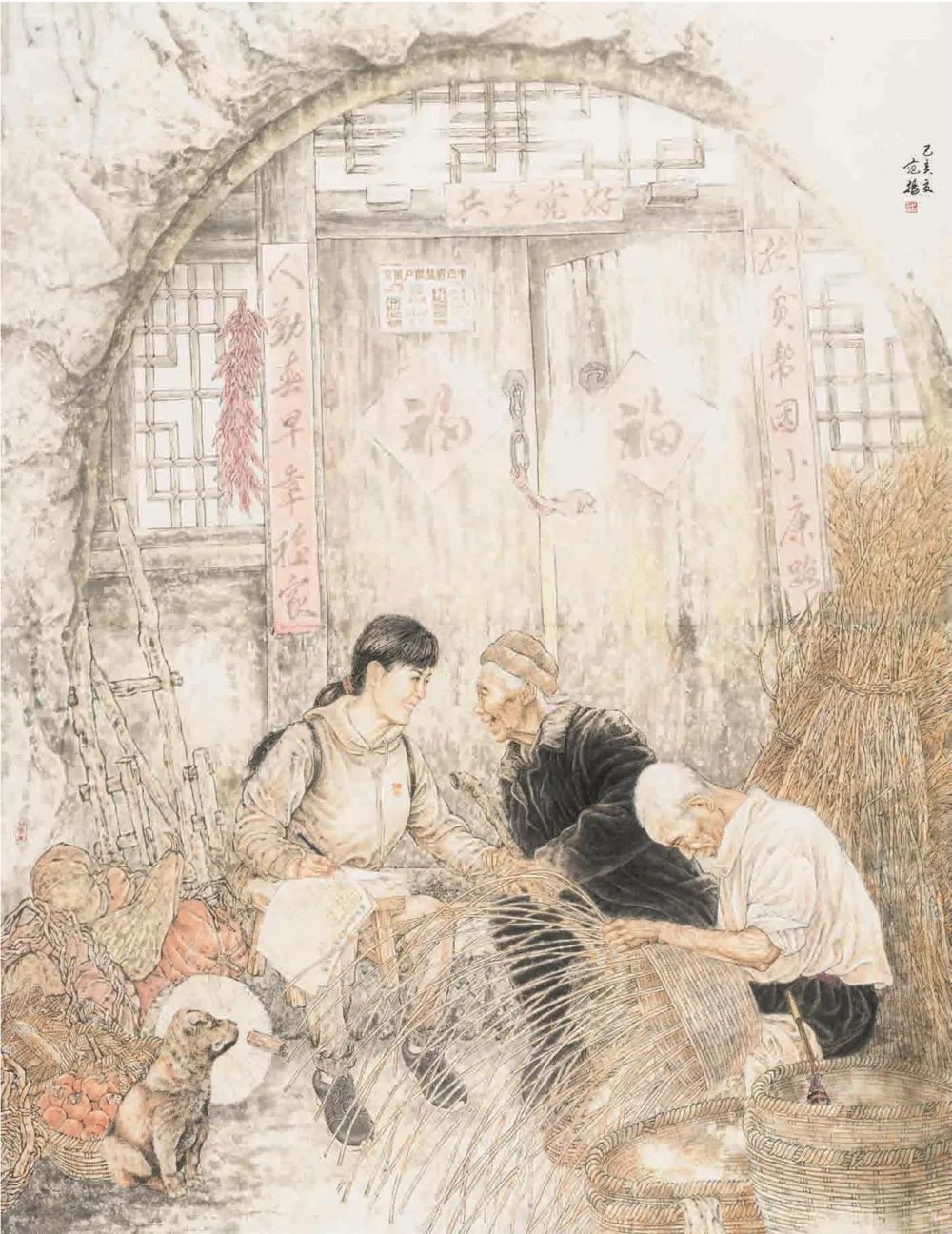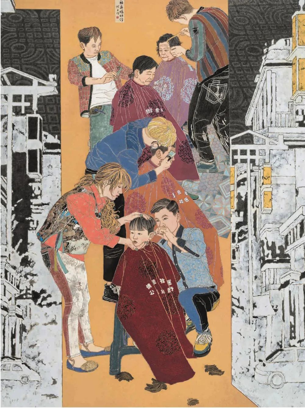 洪日《社区暖相伴》中国画 220x170cm 安徽