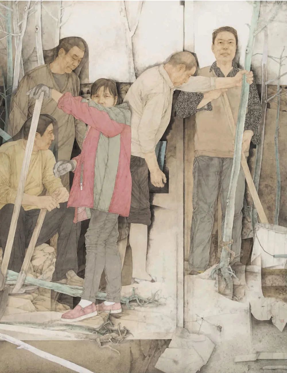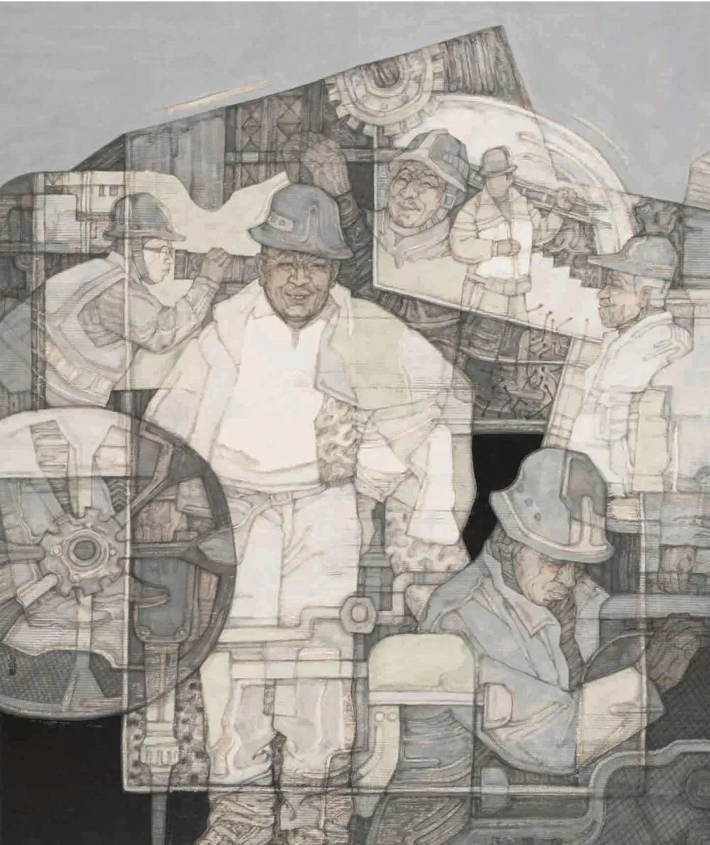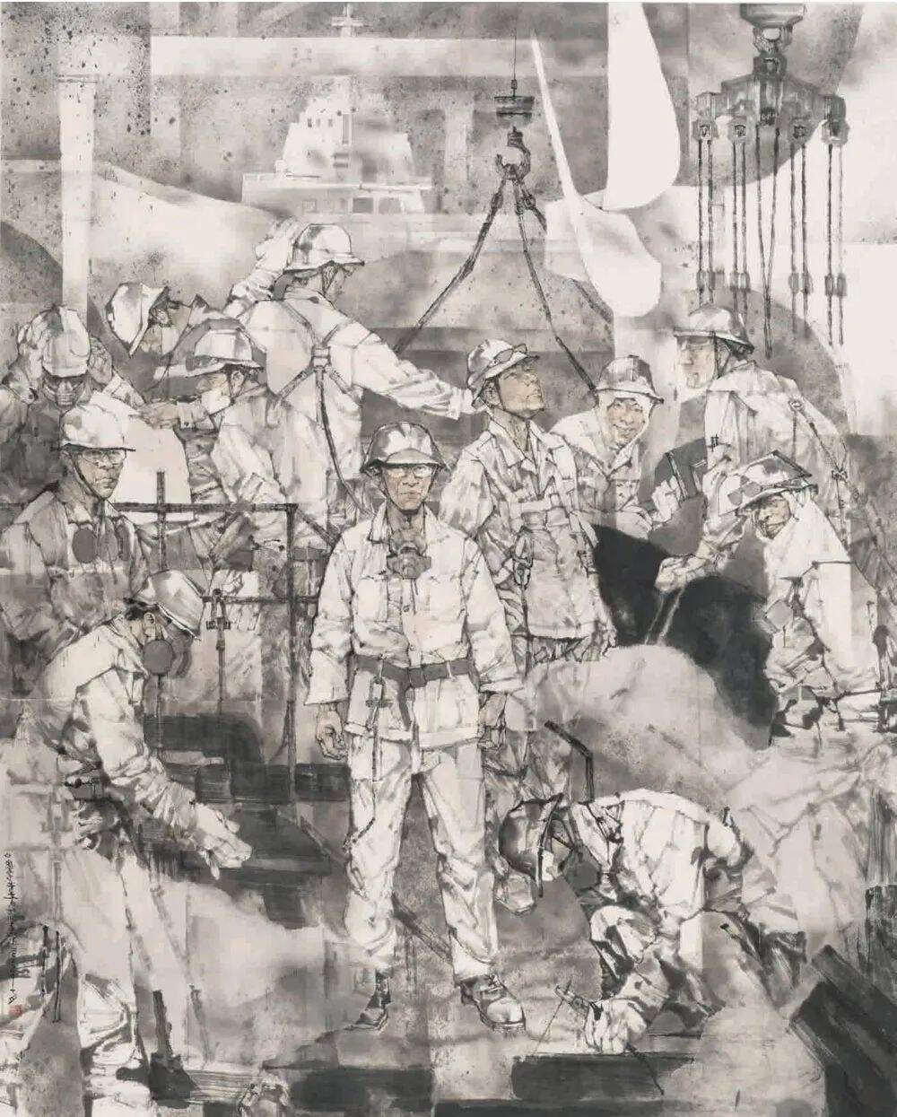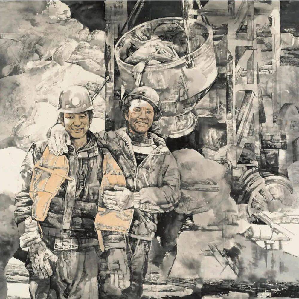 丁筱芳《中国建造者》中国画 234x180cm 上海市