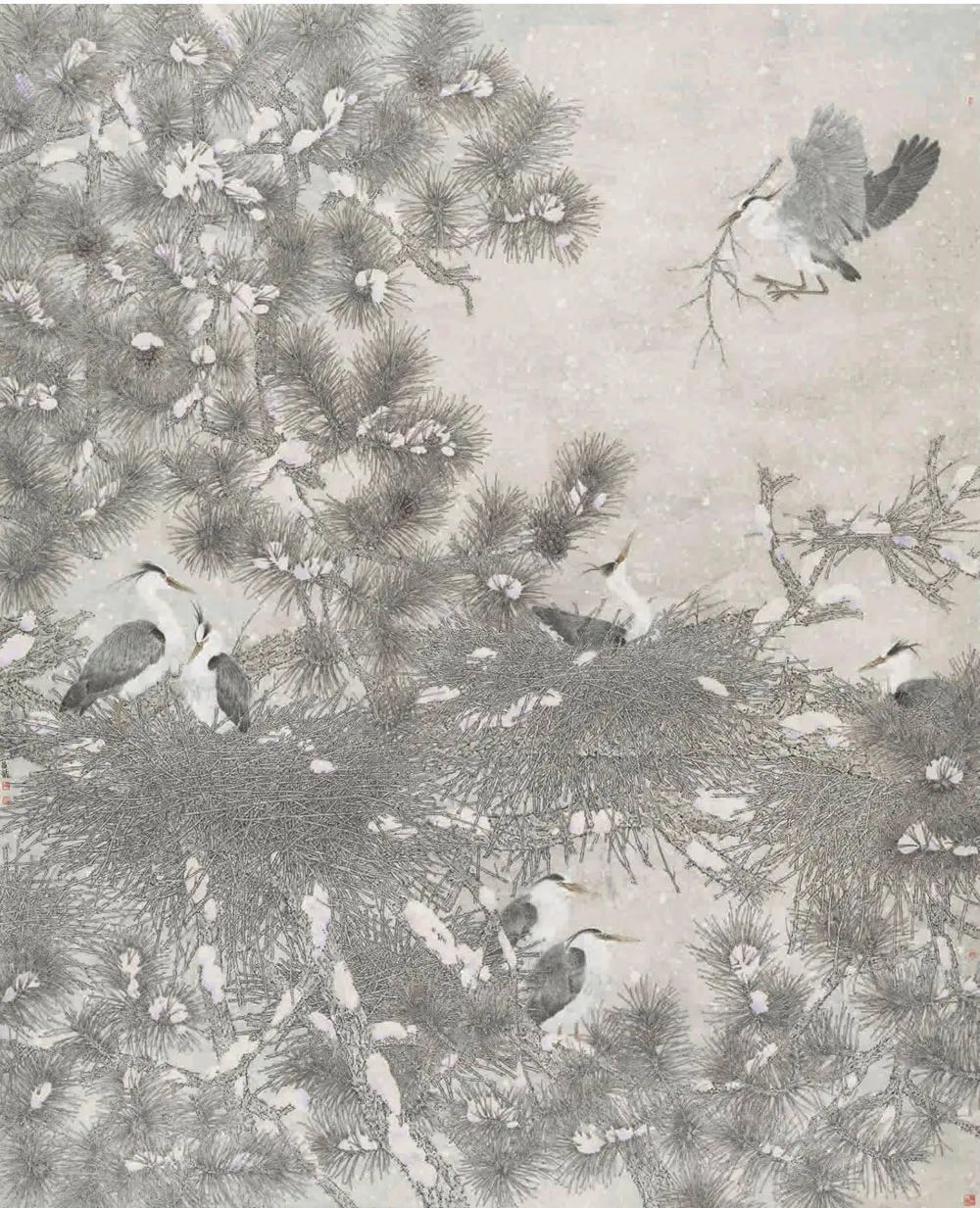 谭昌红《雪落家园自悠然》中国画 235x195cm 辽宁