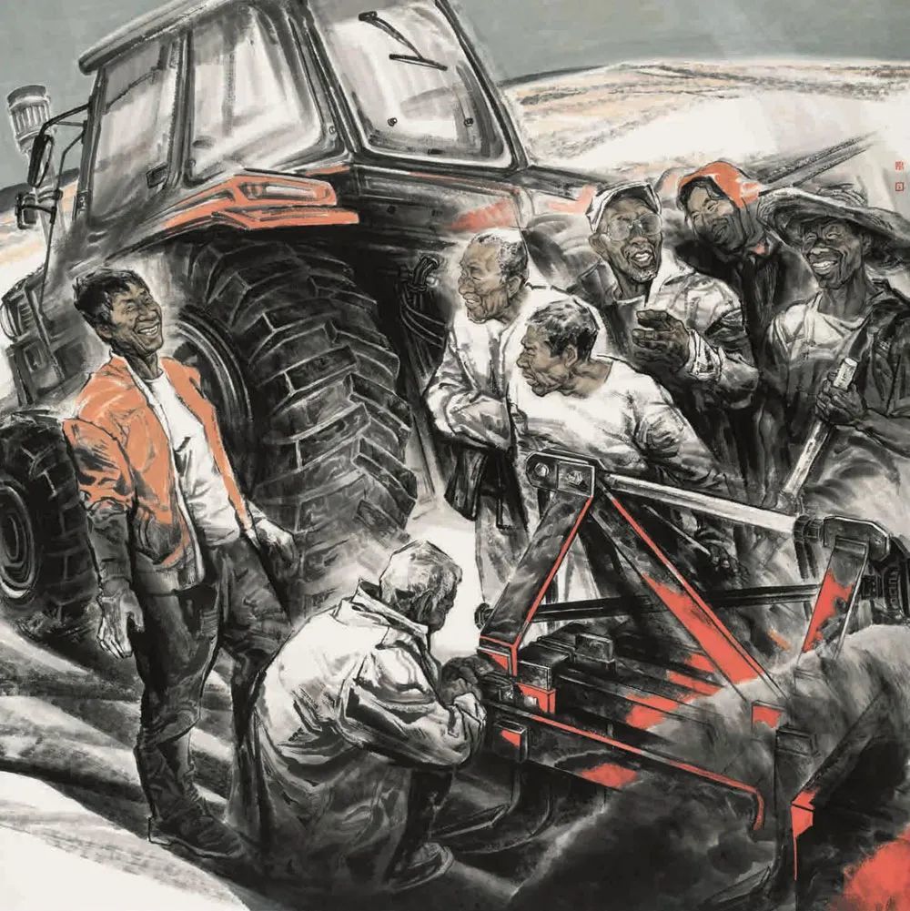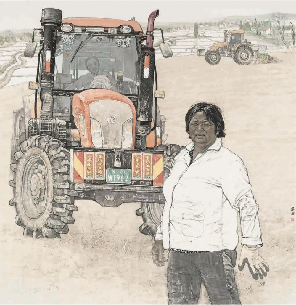 桑建国《五月农家忙》中国画 200x200cm 江苏
