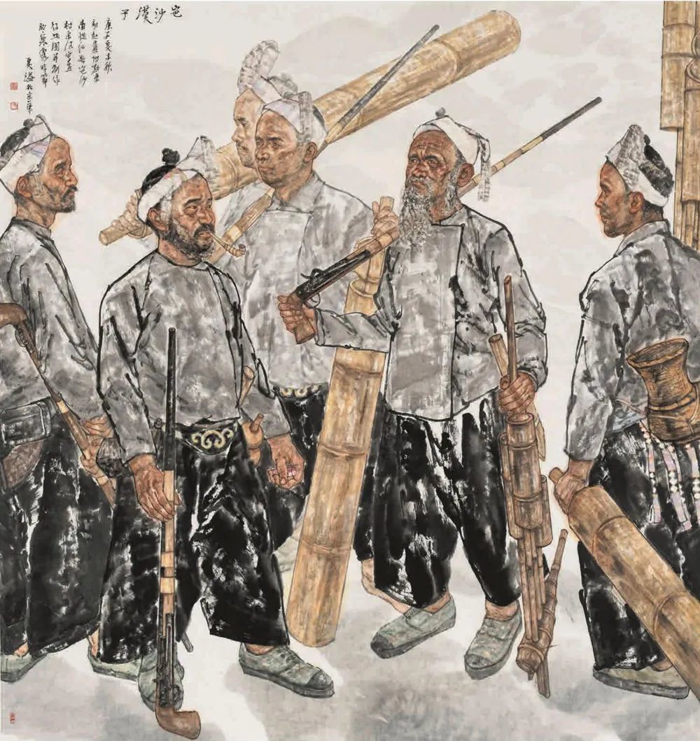 夏溢《岜沙汉子》中国画 198x188cm 江西