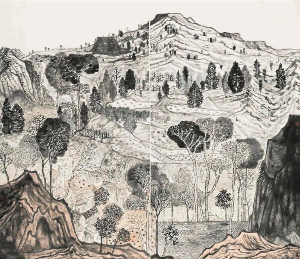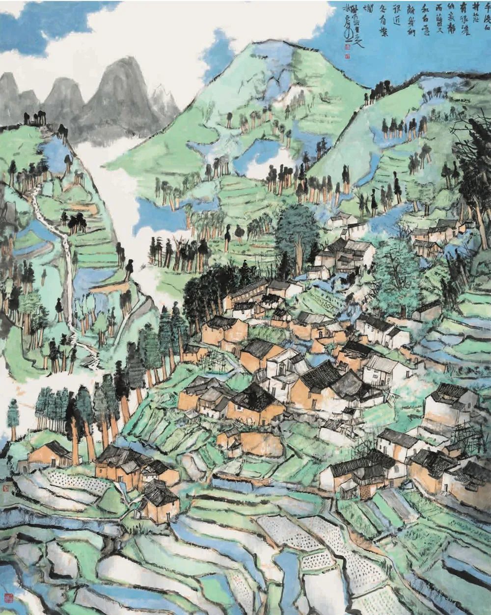 林容生《午后的村庄》中国画 200x160cm 北京