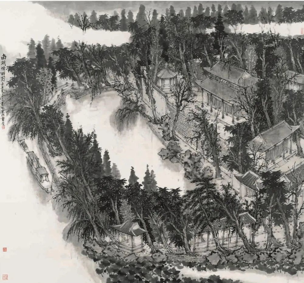 梁明《又见东湖》中国画 240x200cm 福建