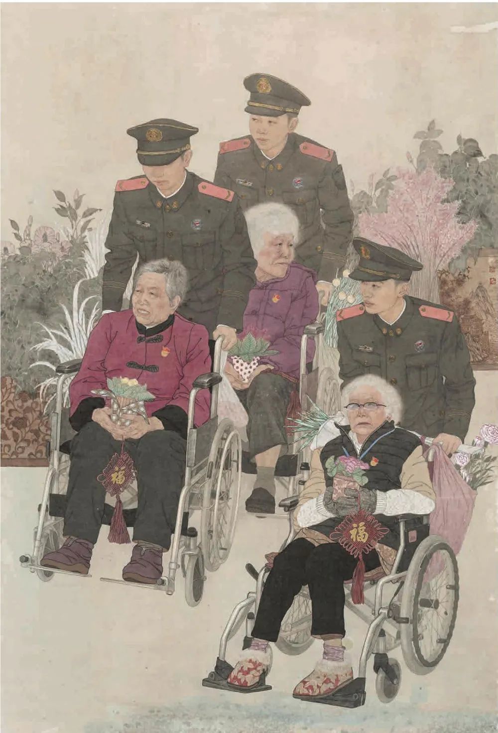 夏令兵《峥嵘岁月·不老女兵》中国画 230x160cm 湖南