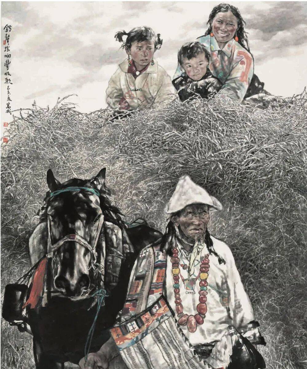 王万成《铃声摇响丰收歌》中国画 205x165cm 甘肃