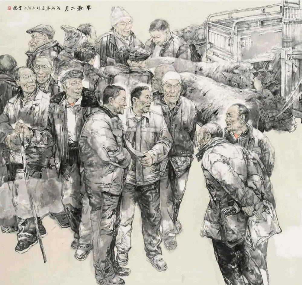 尹育虎《早春二月》中国画 200x200cm 甘肃