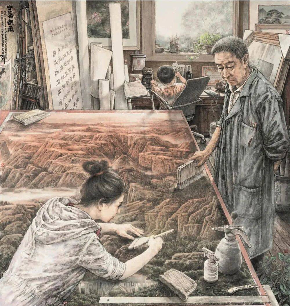 王犇《守艺-家承》中国画 190x170cm 陕西