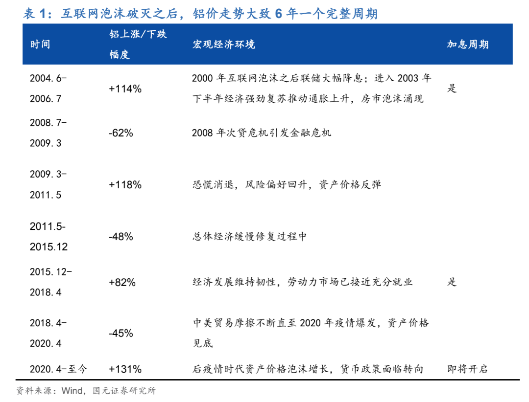 近期商品有色板块表现亮眼,铝价更是高位运行。此前伦敦市场铝价飙升至2008年以来最高水平,触及3333美金/吨。铝价自两年前由于疫情恐慌踩踏出的价格底,已经反弹了将近130%。站在历史的高位,我们思考的是,铝在全球碳中和气候目标的时代背景下,回归产业本身将带来怎样的变局;铝价受宏观和产业共振,价格中枢又将发生怎样的变化。我们试图结合宏观和微观,立足当前基本面,借鉴历史周期效应,对铝价后续走势进行系统性梳理。