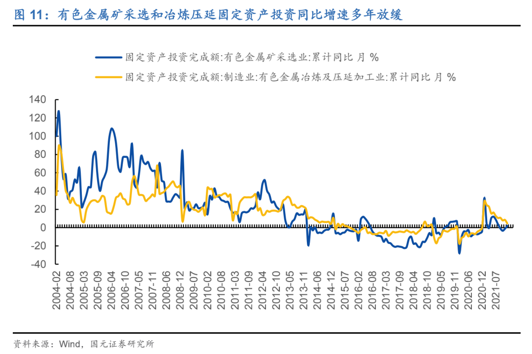 首先国内来看,整个有色板块无论是矿端还是冶炼端的固定资产投资多年来延续低迷,未现上行驱动。