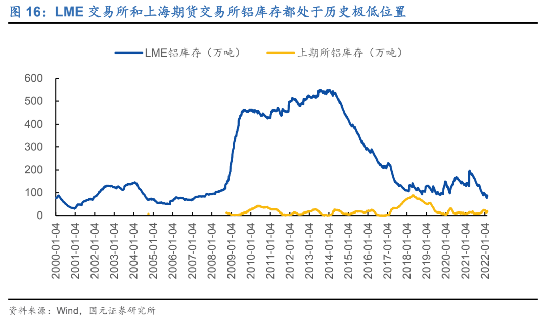 综合来看,铝的全球库存仍处于极低的位置,LME铝库存自2014年持续去化,目前已经低于2008年的水平,而产能的释放和扩张受到成本和政策多重不确定性的考验。预计在长期产能释放被压制的前提下,铝价有望在新兴下游需求的拉动下,长期表现有望穿越周期,表现出新能源金属的特质。