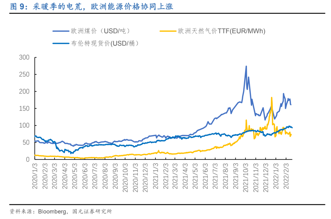 电解铝作为典型高耗能品种,电力成本基本占到总成本30%以上,采暖季的能源荒导致全球范围内的缺电,从成本端和供应端支撑铝价的上涨。料随着海外采暖季结束以及国内煤炭保供稳价持续增强,电力成本将阶段回落。但基于全球碳中和的目标推进,新增的成本压力(碳成本)和产能约束推动铝价格重心上移并不可逆。