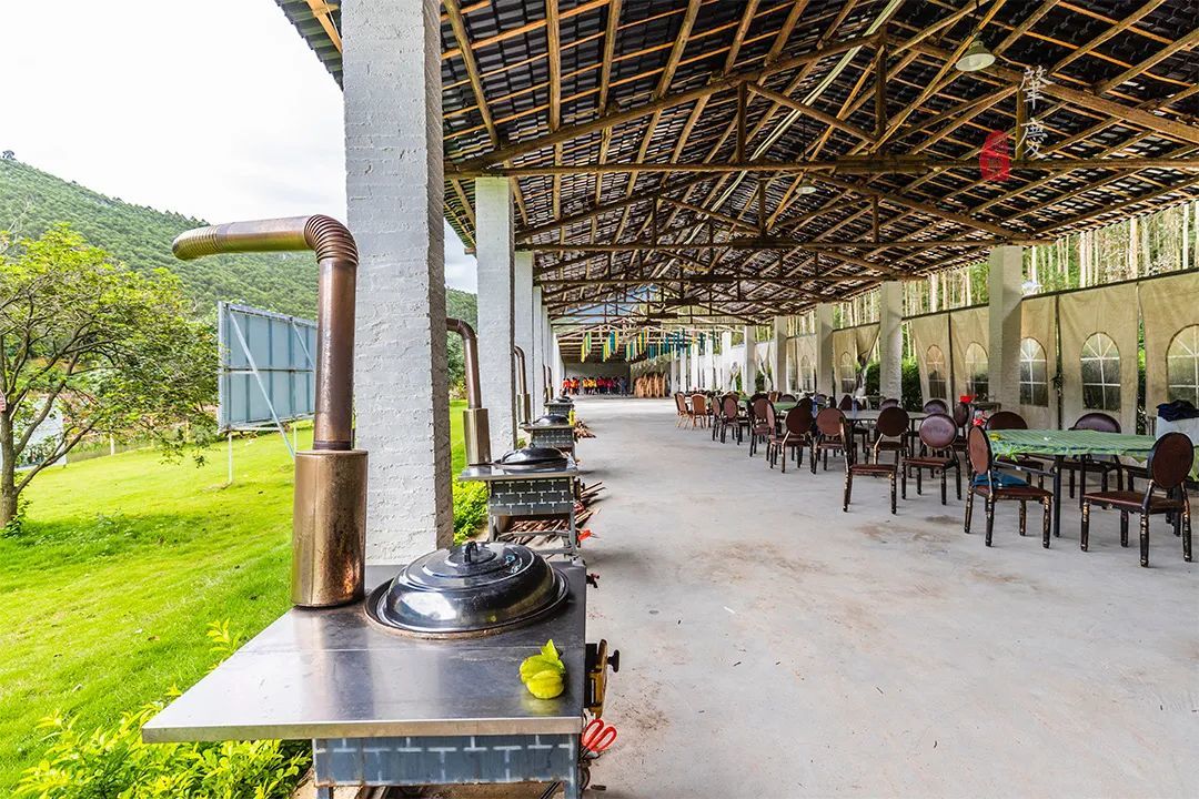 半开放式的餐厅,吃饭的时候,侧边是一望无际的绿色,让人直接胃口大开。