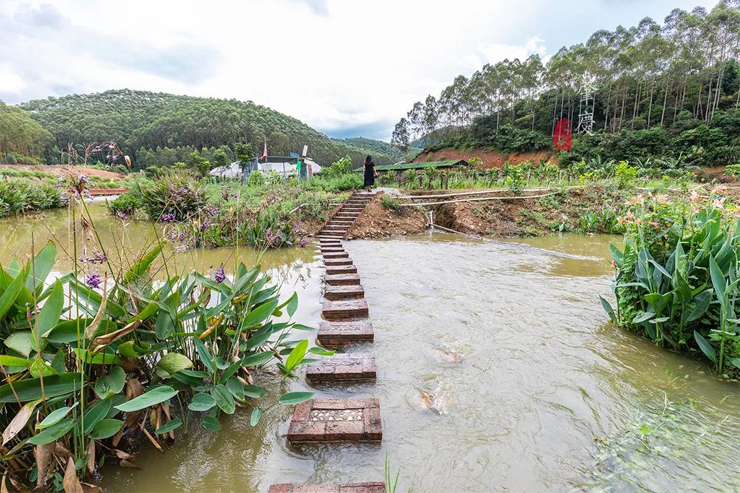 一条小河浅浅流过,给整个画面增加几分动感。走过砖头砌成的跳桥,眼前是另一片风景。