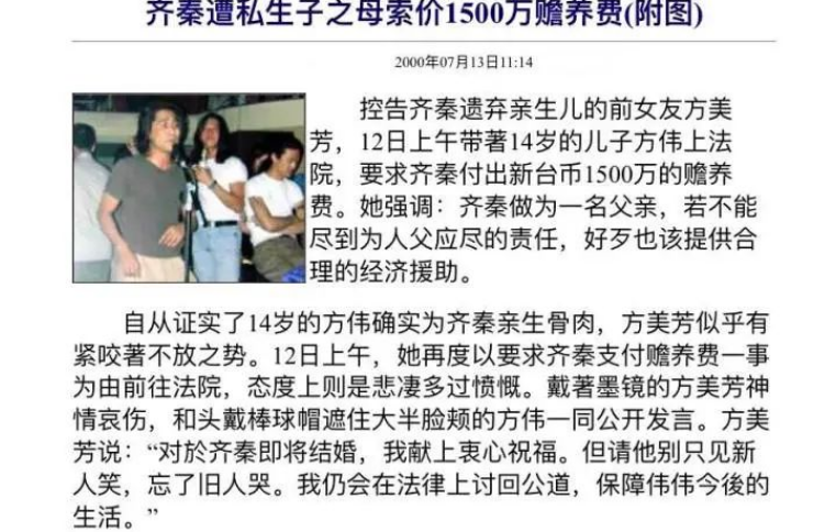 就在宣布结婚前,齐秦的前女友方美芳带着他们14岁的儿子找上了门。