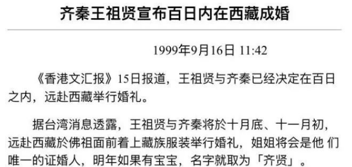 在王祖贤表达想要结婚的第二年,齐秦与王祖贤分手。