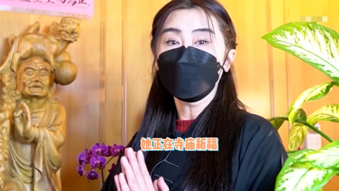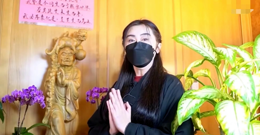 画面中,她穿着僧袍双手合十,以“行觉居士”的身份十分虔诚的祈福。