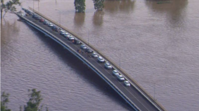 澳大利亚东部居民因洪水被困桥上(视频截图)