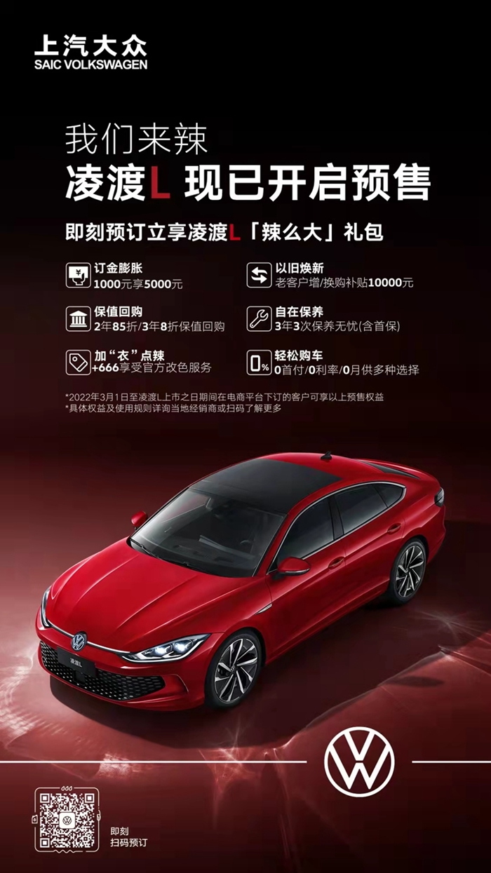 最重要的是,现在下订即可享受“辣么大”礼包(包含订金膨胀、以旧换新、保值回购、自在保养、加“衣”点辣、轻松购车等多重礼遇),好的产品加上好的服务,凌渡L确实让人心动。