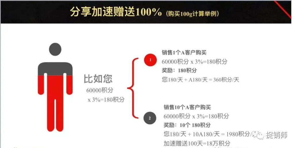人头分享销售:分享销售黄金获得被分享人每天兑换积分值的100%加速;