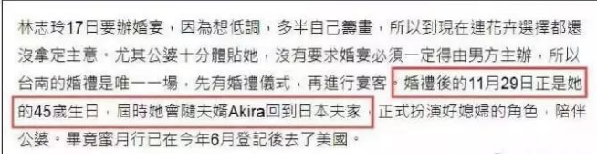 出轨绯闻先不说,日、台媒体都频繁提及一件事:男方母亲多次催生。这倒不是空穴来风,婚后林志玲就按习俗随黑泽到了日本定居,还与公婆住在一起。