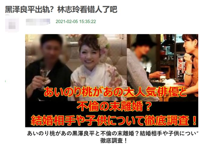 日本媒体对这对夫妻的关注度也很高,曾爆料称黑泽良平想要孩子,林志玲婚后却一直没有好消息,郁闷之下黑泽外出喝酒,还公然出轨。