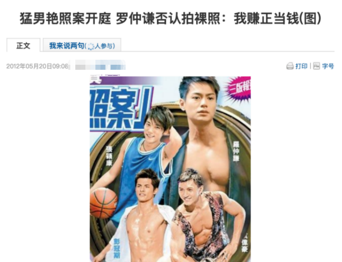 除此之外,在当年震惊全港的刘定成“猛男艳照案”中,也有罗仲谦的身影。