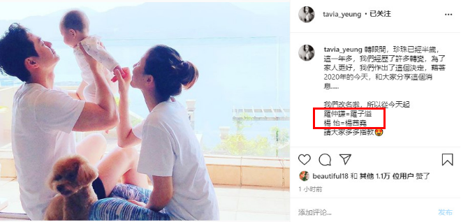 两人并不满足于“一家三口”,杨怡俨然已经忘记自己曾说的“儿女随缘”,和老公双双改名,罗仲谦改为罗子溢,杨怡改为杨茜尧。