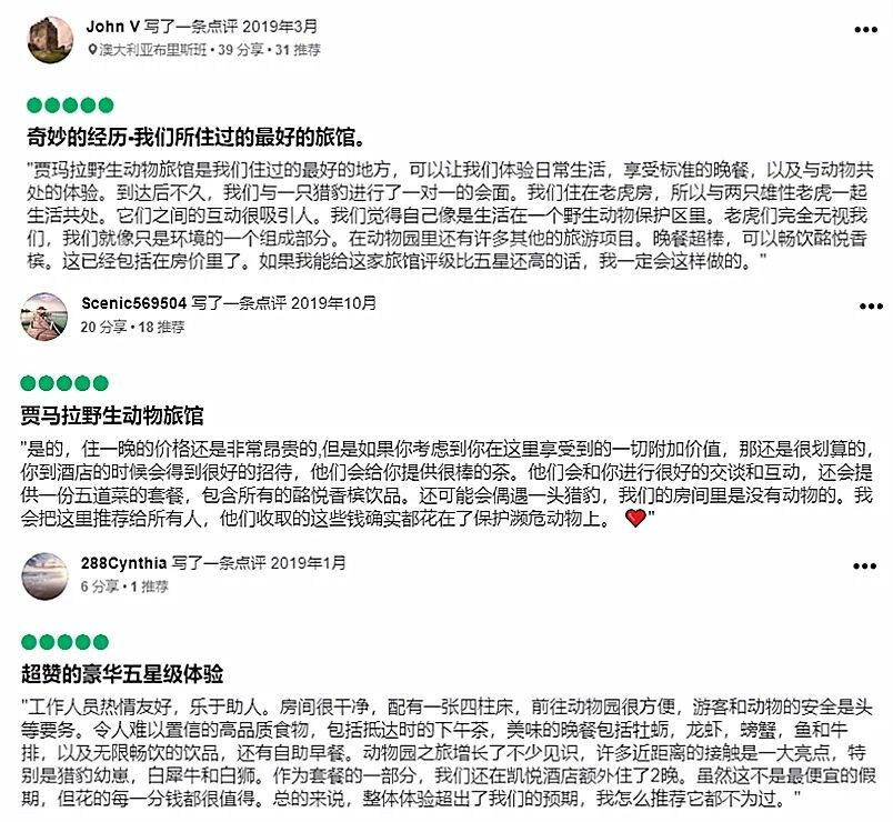 贾马拉野生动物旅馆好评如潮